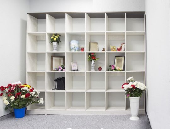 В нашем похоронном доме создана специальная колумбарная комната, которая предназначена для временного хранения урн. Так же в удобных нишах можно разместить памятные вещи, фотографии.